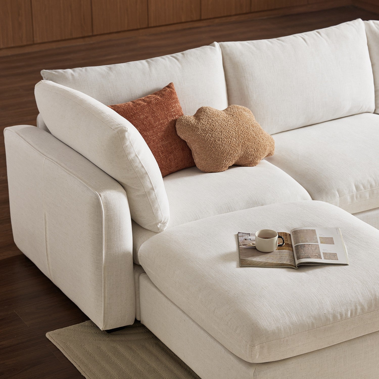 With three layers of filling—silk cotton, plush cotton, and high density foam—this couch is soft yet supportive. The upgraded seat depth and width give you plenty of room to stretch out, while the enveloping design makes you feel like you’re sinking into a cloud. It’s the kind of comfort that makes you want to stay all day.