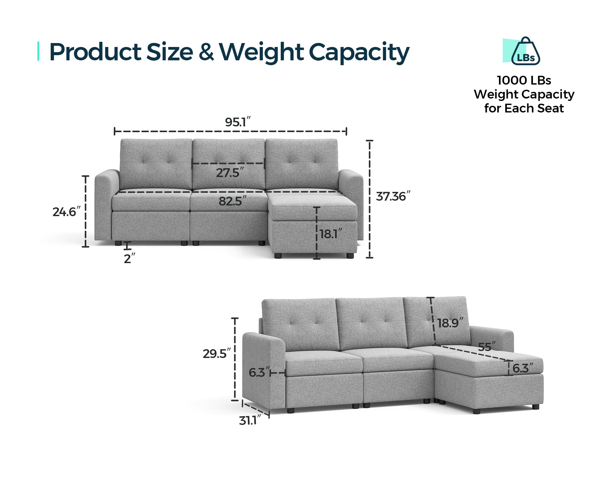 General Dimensions: 95.1"W x 37.36"H x 55"D