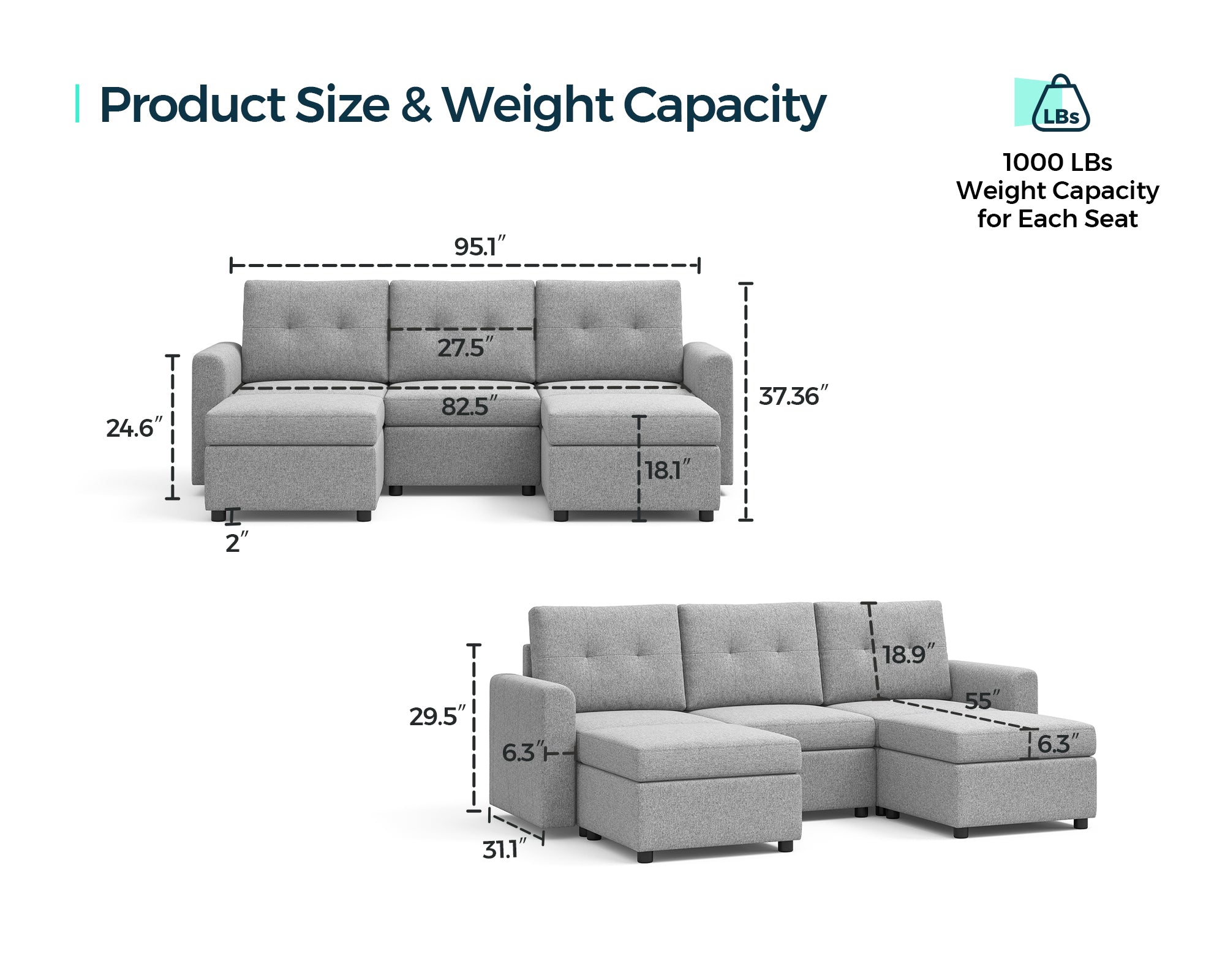 General Dimensions: 95.1"W x 37.36"H x 55"D