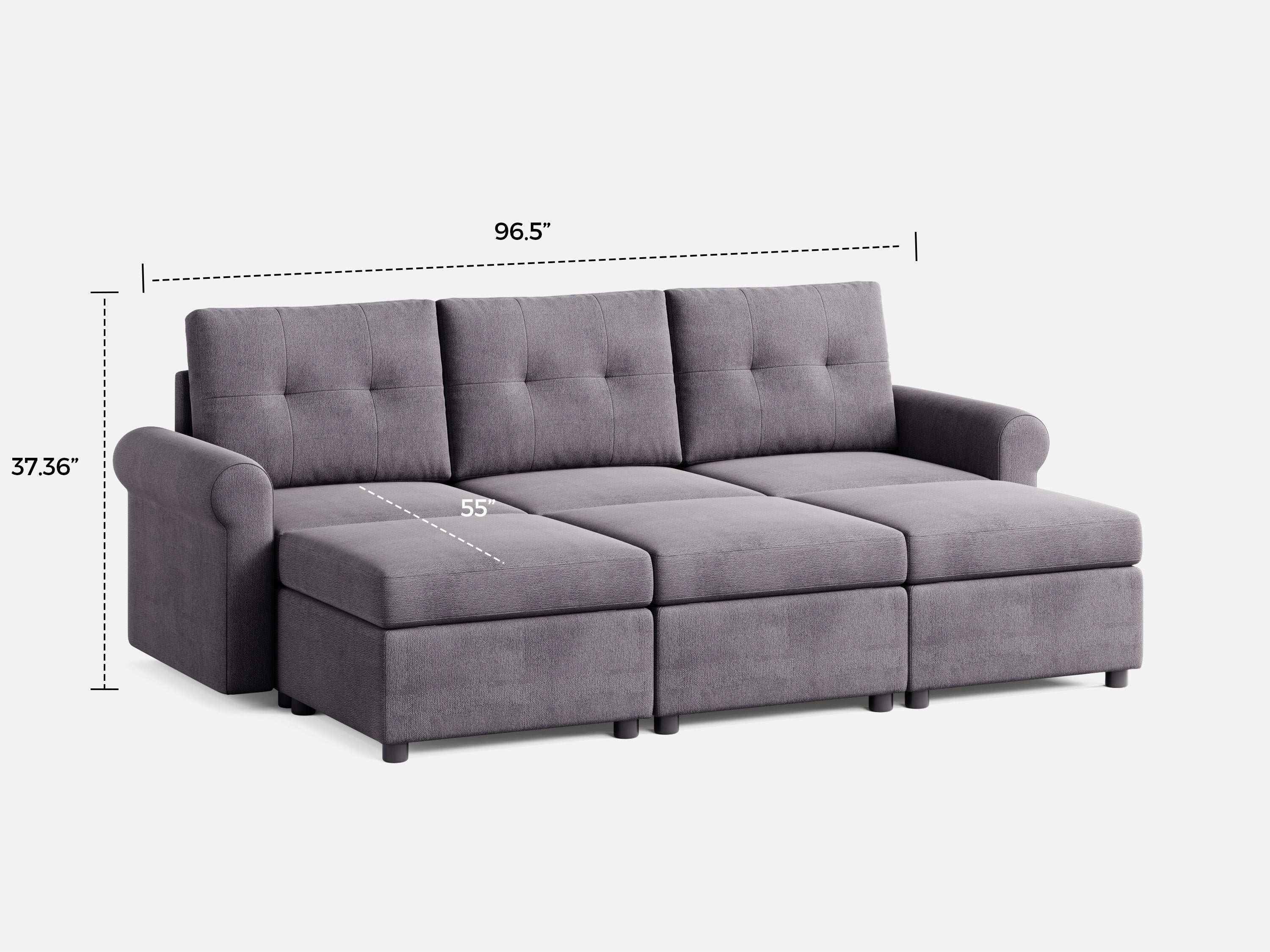 General Dimensions: 96.5"W x 37.36"H x 55"D