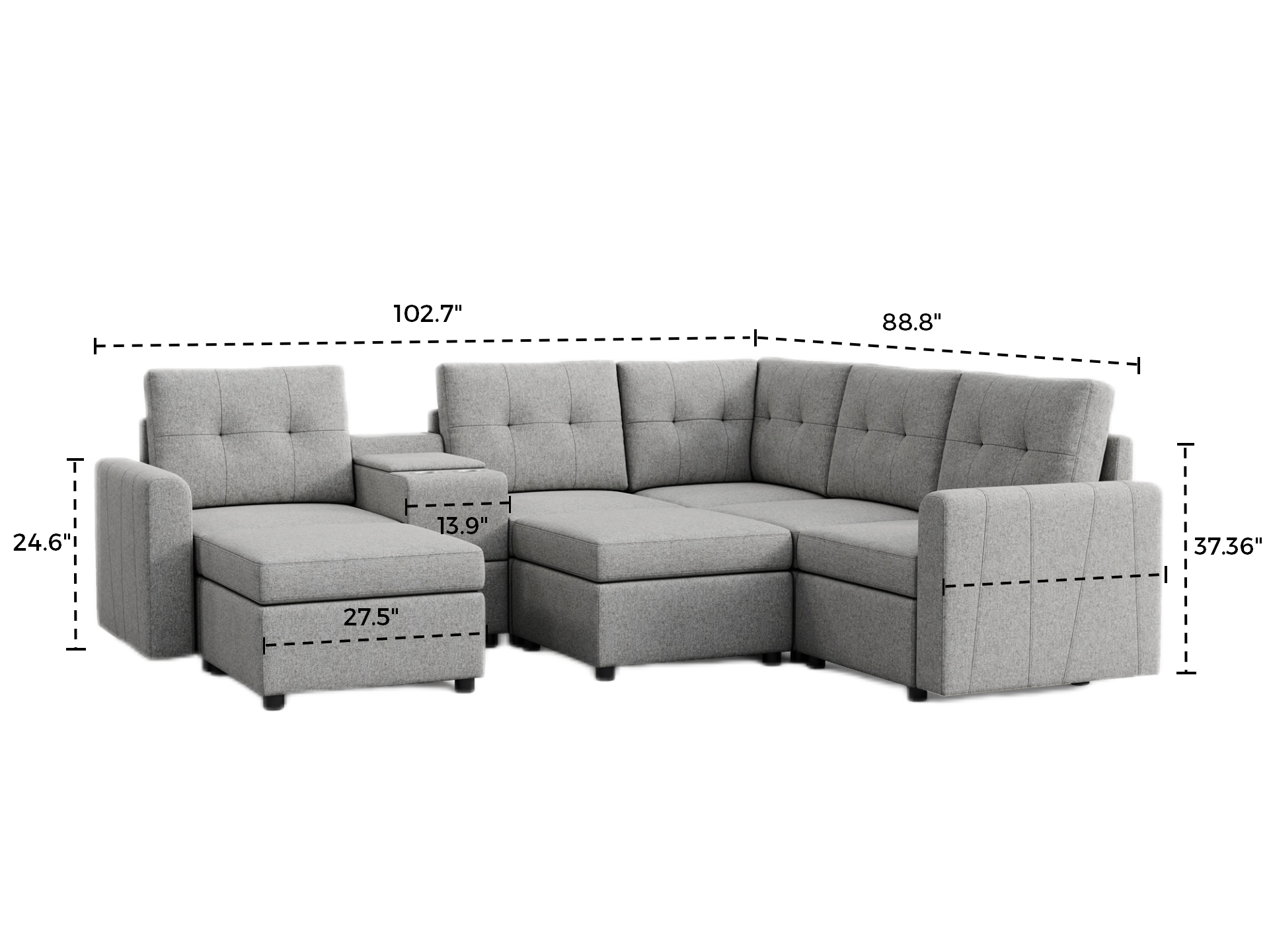 General Dimensions: 102.7"W x 37.36"H x 88.8"D