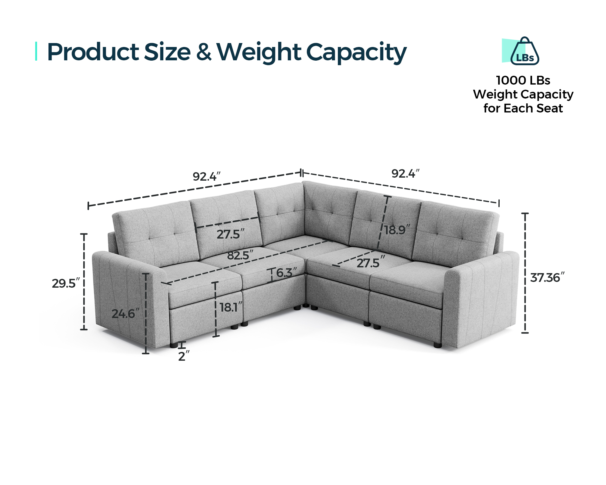 General Dimensions: 92.4"W x 35.4"H x 92.4"D
