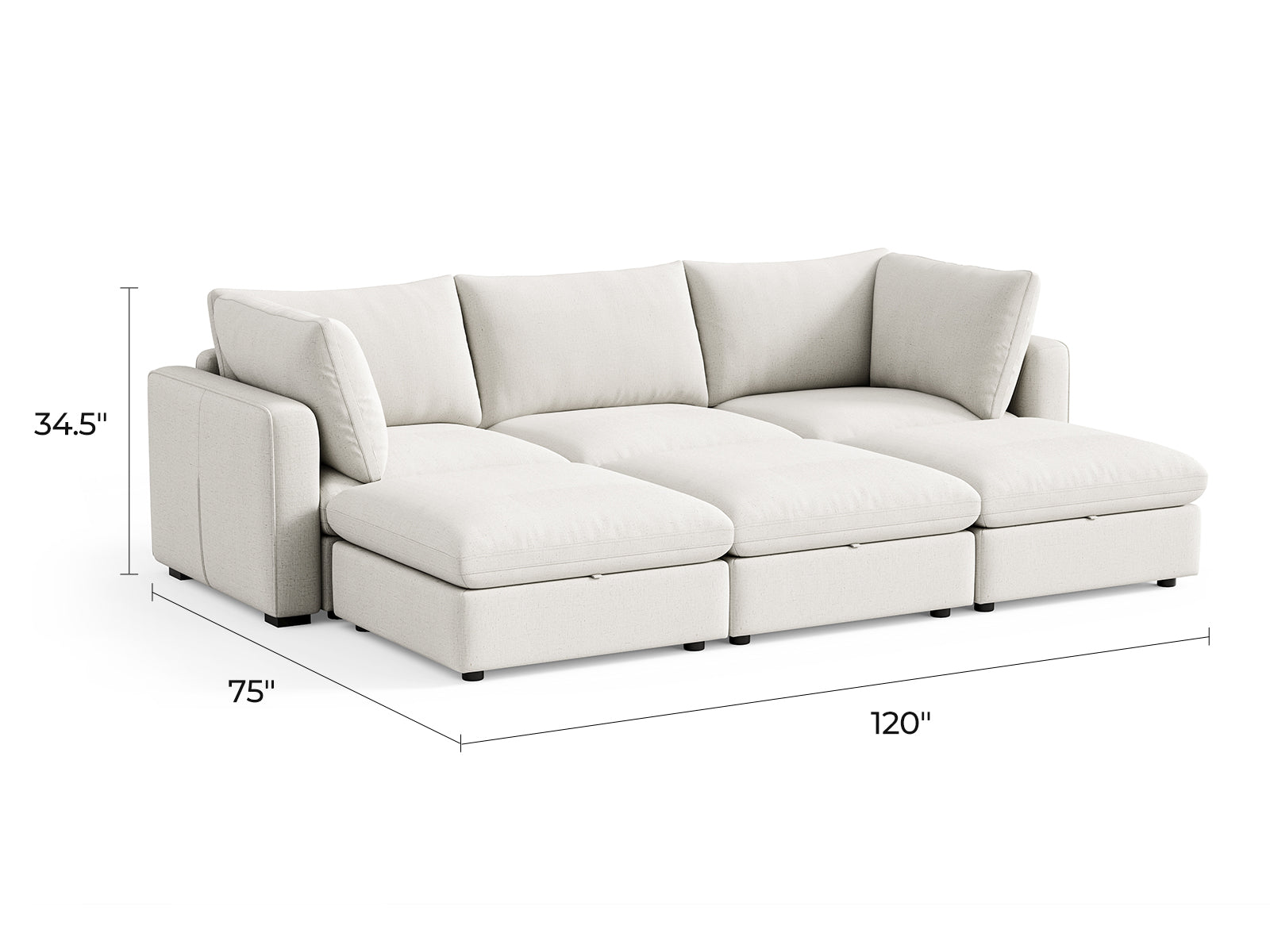 General Dimensions: 120"W x 34.5"H x 75"D