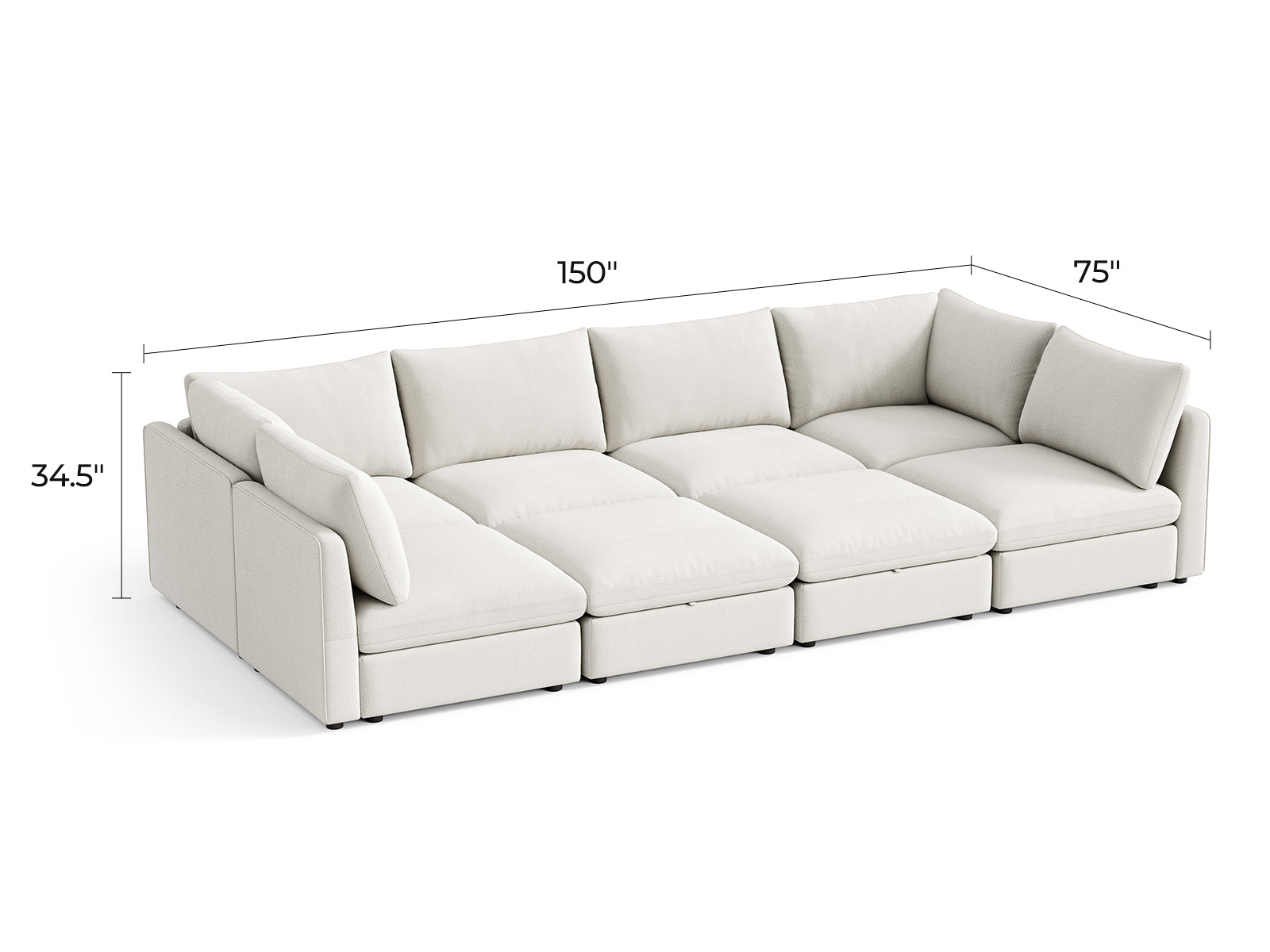 General Dimensions: 150"W x 34.5"H x 75"D
